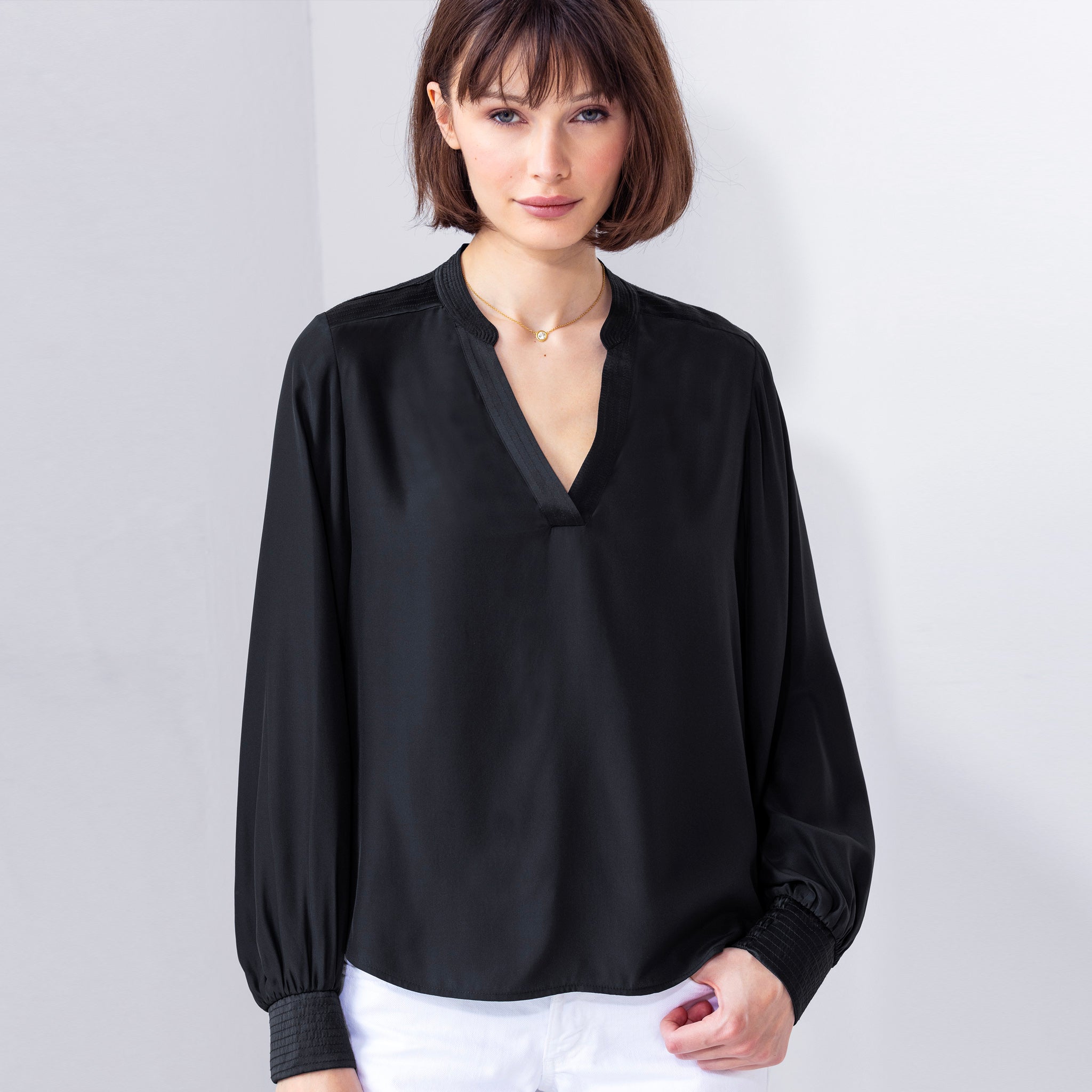 A versatile addition to your everyday wardrobe. We especially love how the track-stitching at the yoke, collar, and cuff adds a touch of detail, making it ideal for pairing with your workday to weekend looks. Designed with just enough length that it can be tucked in.