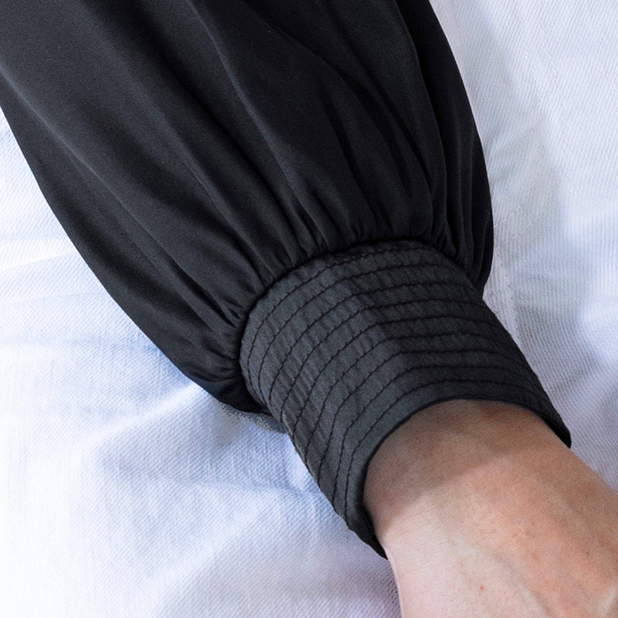• Barrel cuff with smocking detail and track stitching