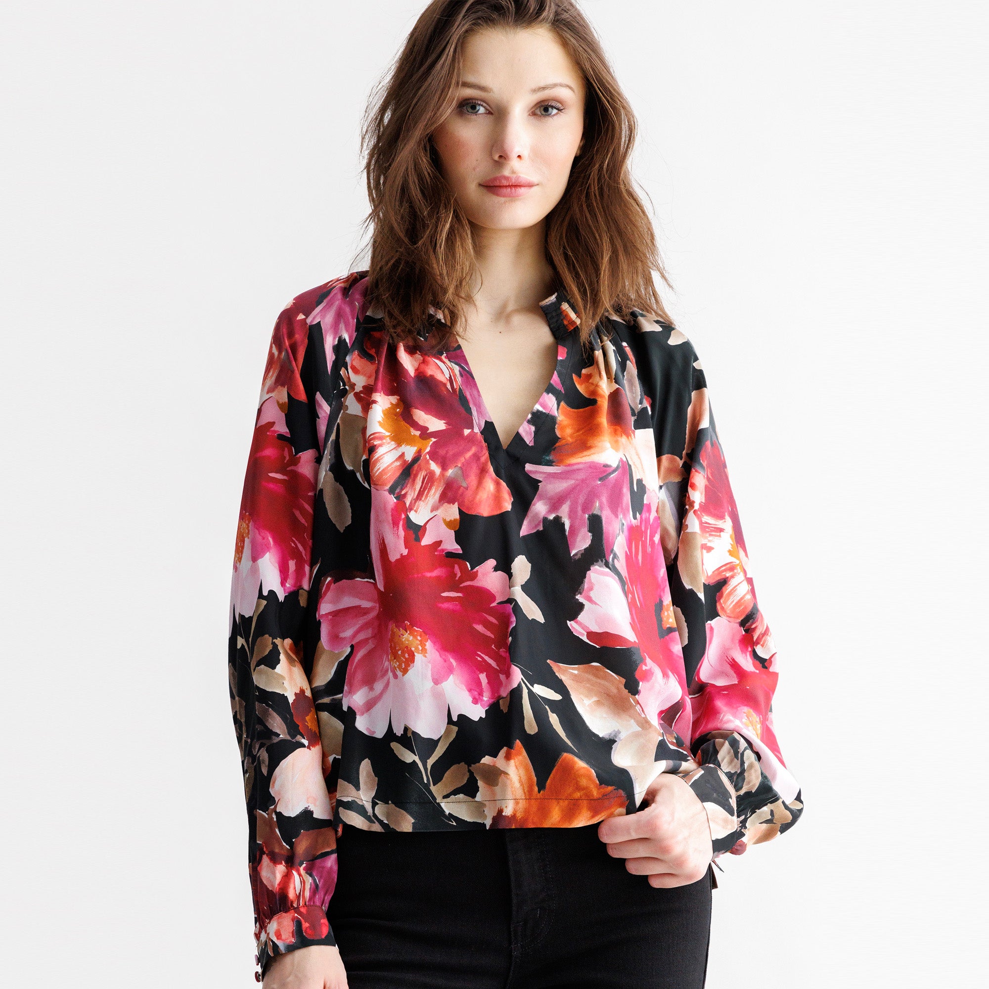 A nod to the timeless peasant top but minus any extraneous volume, this has the versatility of a favorite shirt with the boho vibe we are all seeking nowadays. We've fully pleated the stand collar to give the top perfectly subtle detail.