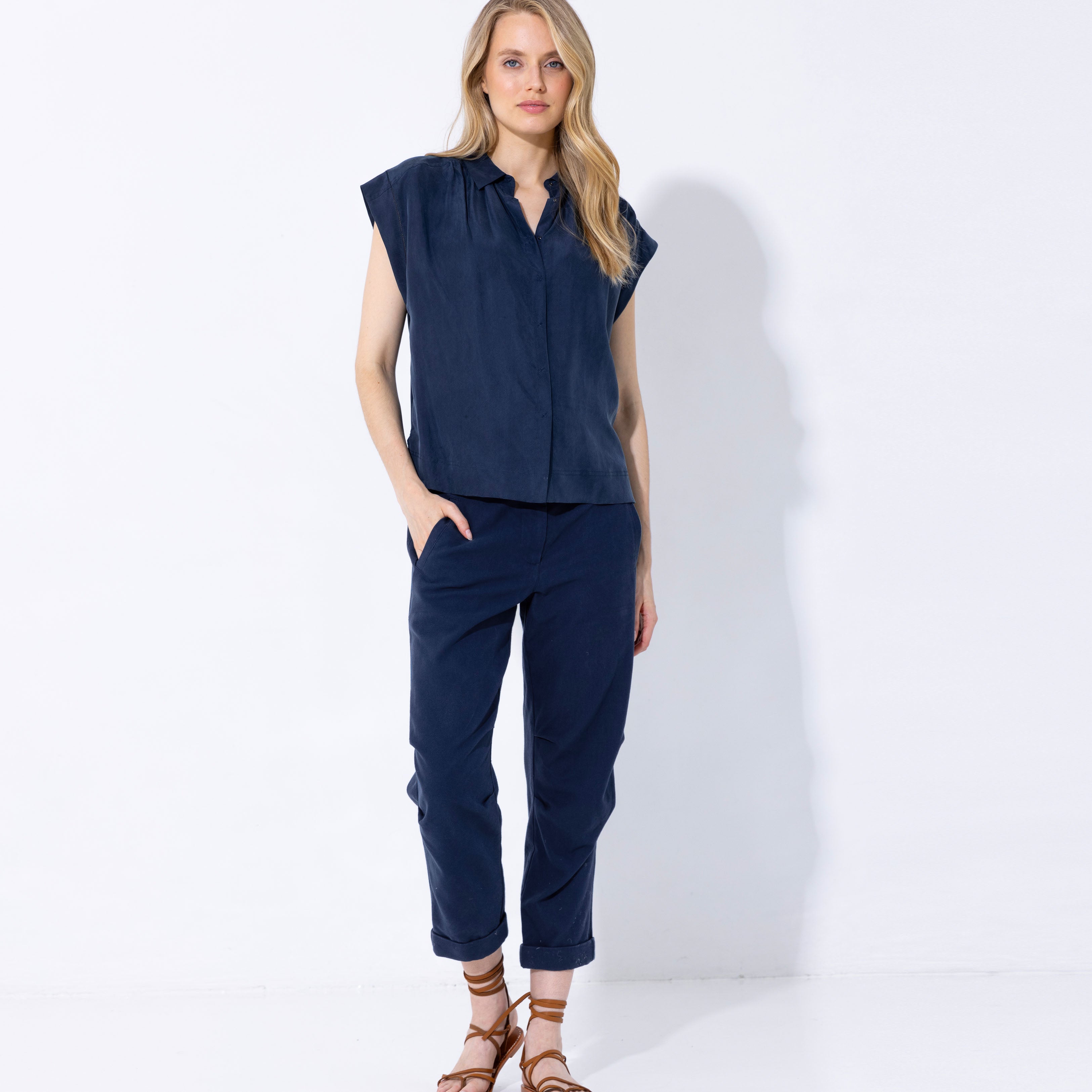 We like to introduce you to the classic camp shirt's more stylish best friend. It has all the comfort of a camp shirt, but made in the airiest parachute silk and with stylized details like billowy shirring and a topstitched wide hem. Breezy and lightweight, this top works with all your favorite bottoms: We especially love it paired with jeans or as a head-to-toe look with our On The Go> Pant